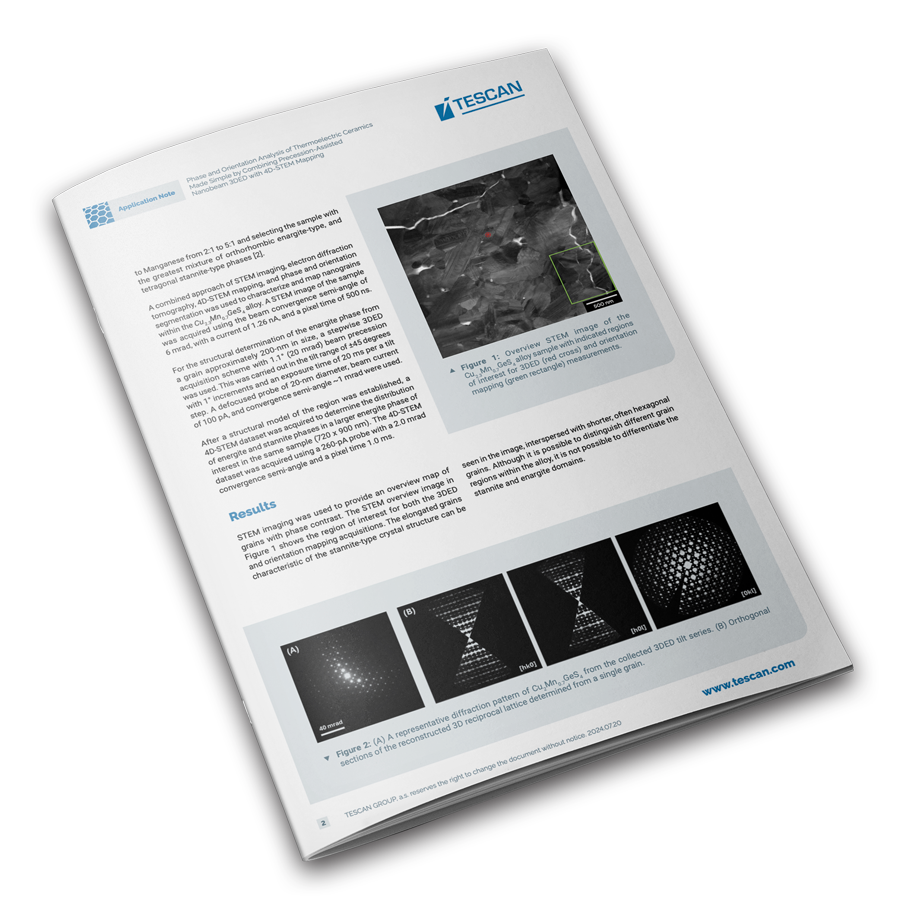 Discover groundbreaking techniques in thermoelectric ceramics analysis with the TESCAN TENSOR system. Learn how 3DED and 4D-STEM mapping can revolutionize your research. Download our detailed application note for in-depth insights and practical applications.